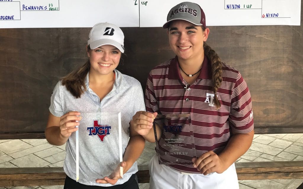 AUG 7-9 | BRYAN, TX – It was wet, it was rainy, it was soggy and it was long, but after 3 days, a 3-hour rain delay and [almost] 90 holes of golf, two champions finally emerged at the 2nd annual State Match Play Invitational at the home of the Texas A&M golf team, the famed Traditions Club. What was supposed to be 36 holes of competitive qualifying on Day 1 was, unfortunately, shortened to 18 holes after severe thunderstorms pushed play back on the first morning and then halted it all together for almost 3 hours before the match play field was finally set.
